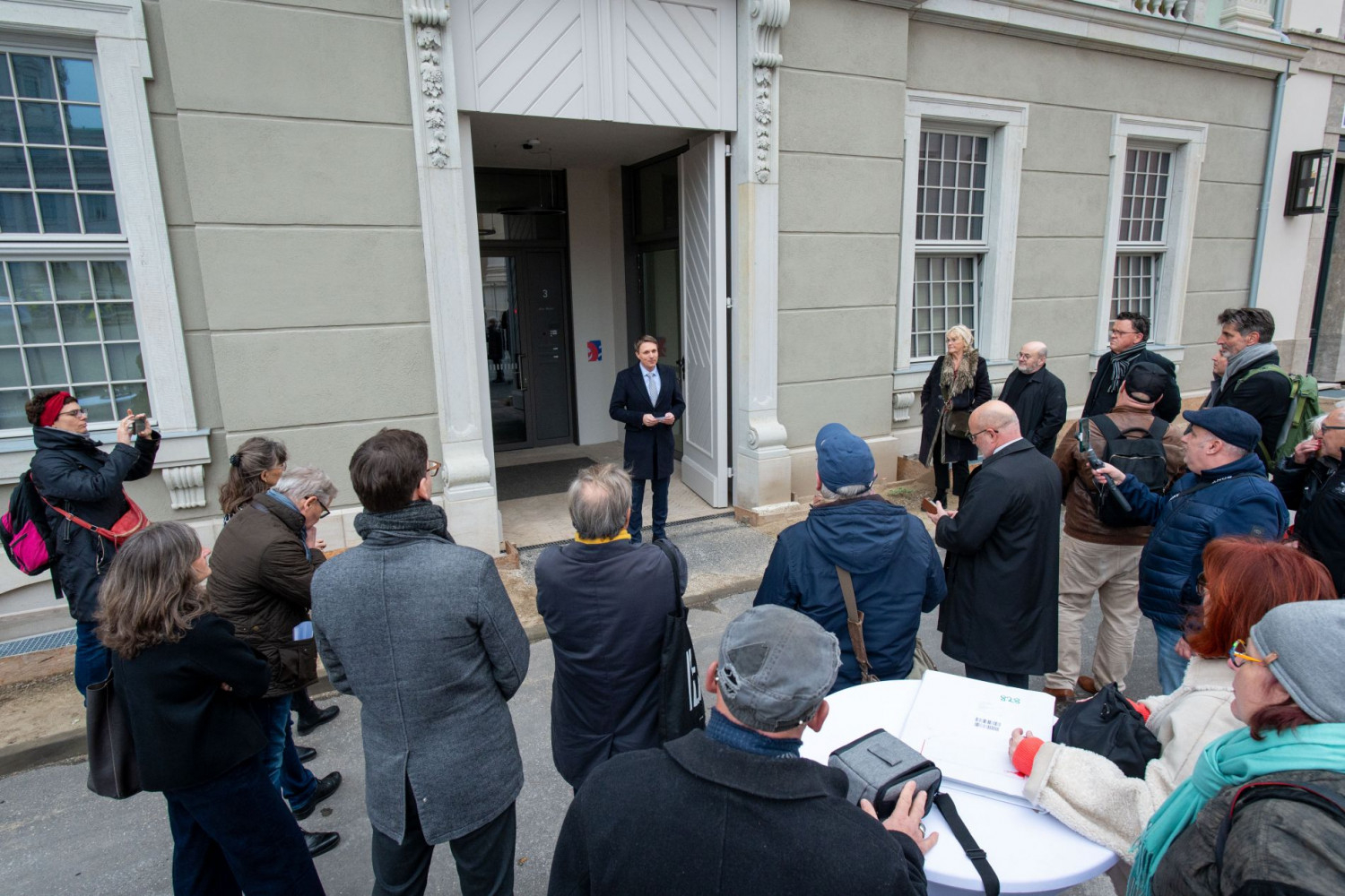 Nach der kurzen Zeremonie zur Enthüllung der Plakette fanden die Gäste Zeit für einen Rundgang und die Besichtigung der von der 1956 errichteten Häuserzeile in der Anna-Zielenziger-Straße. Gegen Ende der Veranstaltung waren sich alle einig: Das Klingnersche Haus mag bundesweit das zweitschönste Gebäude sein, in Potsdams Mitte ist es das schönste.