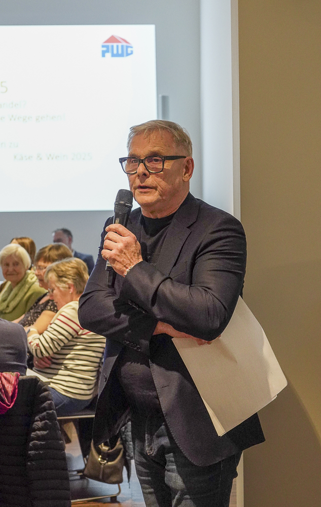 Das Miteinander in der 1956 betonte auch Vorstandsmitglied Matthias Pludra an den Abenden. „Vor über zehn Jahren fand im Kunsthaus sans titre das erste Mal Käse & Wein statt. Damals haben wir über viele Dinge gesprochen, die man verändern sollte“, sagte Pludra. Zu den Dingen, die er aufzählte, gehören etwa die Verbesserung der Kommunikation oder eine bessere Erreichbarkeit der Verwaltung. „Seither haben wir unseren Wohnungsbestand erheblich erweitert“, erklärte Pludra. Zählte die PWG 1956 im Jahr 1990 (Stichtag 1. Juli) noch 3.400 Mitglieder, waren es zum 30. Juni 2025 schon 8.055. Im selben Zeitraum wuchs auch der Bestand von 3.397 Wohnungen auf 4.412 und die Gewerbeeinheiten von einer auf heute 53. „Das alles haben wir miteinander erreicht“, betonte Pludra. „Wir haben damals wichtige Entscheidungen für die Zukunft getroffen. Dafür ein großes Dankeschön an Sie, an alle Angestellten und Mitarbeitende.“