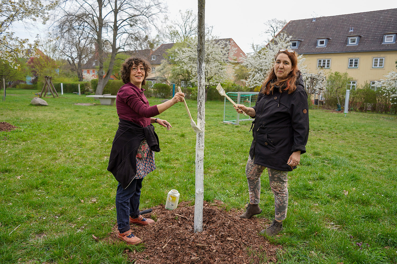 Viele Teilnehmende brachten eigene Arbeitsgeräte mit, weitere Materialien wurden im Vorfeld über die Servicebüros organisiert. Mit dazu gehörten 410 Frühblüher, 105 Säcke Muttererde und 68 Säcke Rindenmulch, aber auch 20 Müllgreifer und 12 Pinsel.